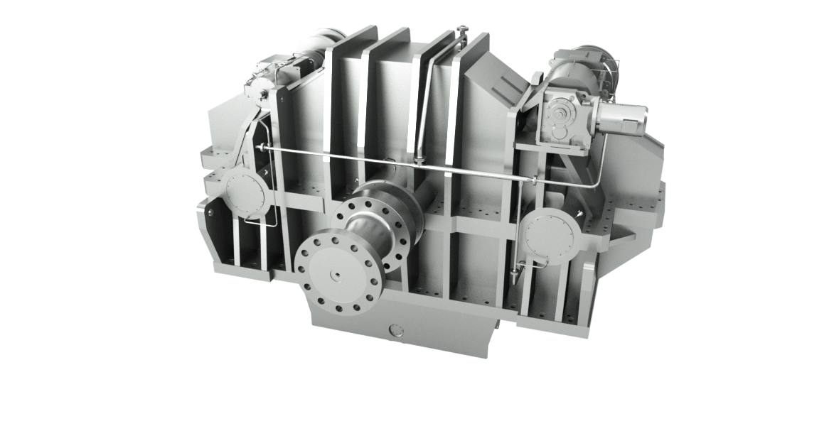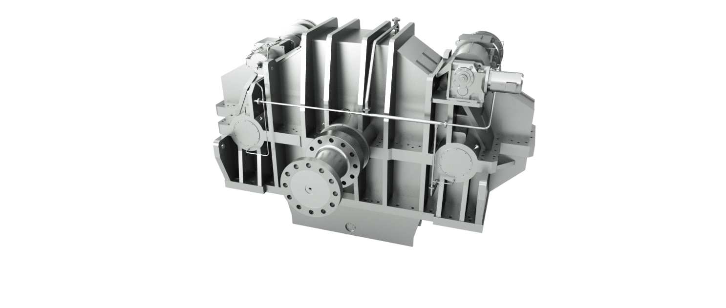 The double gear units for the cutter head have center distances of up to 5,000 mm and are designed for up to 300 metric tons. Two engines are combined with two- or three-stage double gear units, which are mounted on the cutter head. Our housing and thrust bearings are designed to be able to safely withstand the enormous forces of the cutter head.